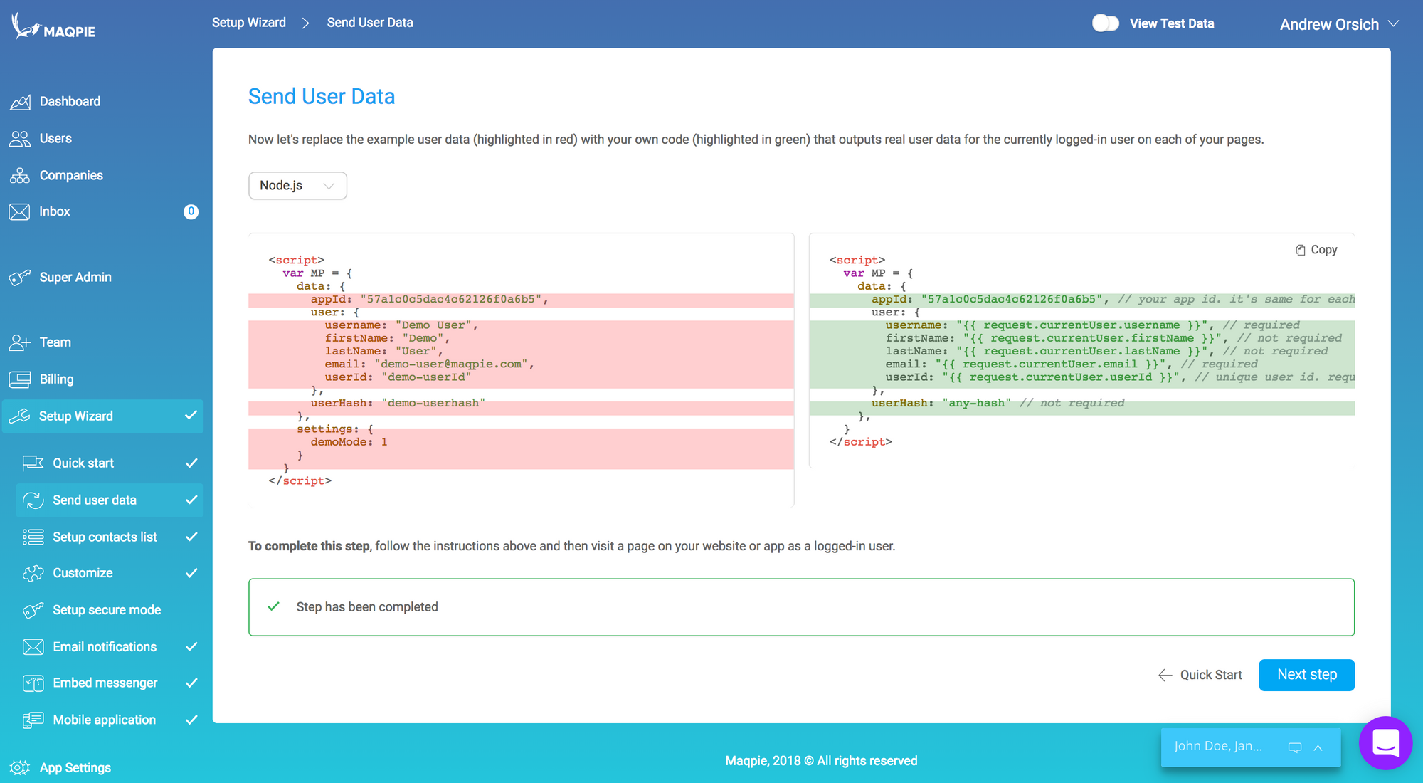 Step 1: Integrate JS widget and send user data
